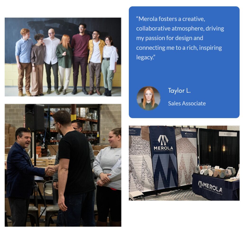 Merola Tile Distributors of America LLC blends design, craftsmanship, and collaboration—building “one tile, one relationship at a time”—and offers a dynamic workplace that values curiosity and ideas.